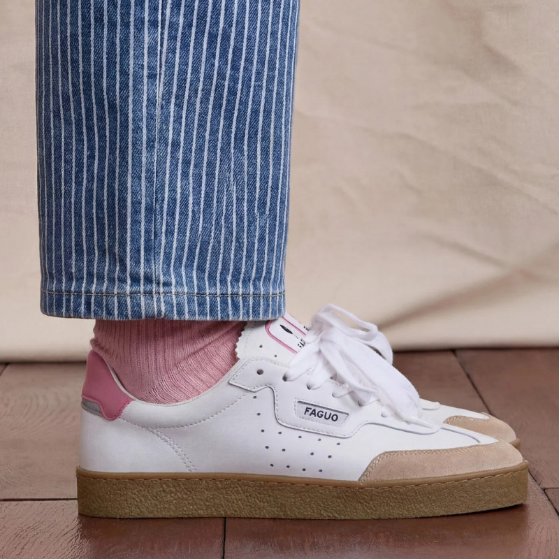 Les baskets en cuir femme rose grisé LUMBO allie élégance décontractée et confort actif.
