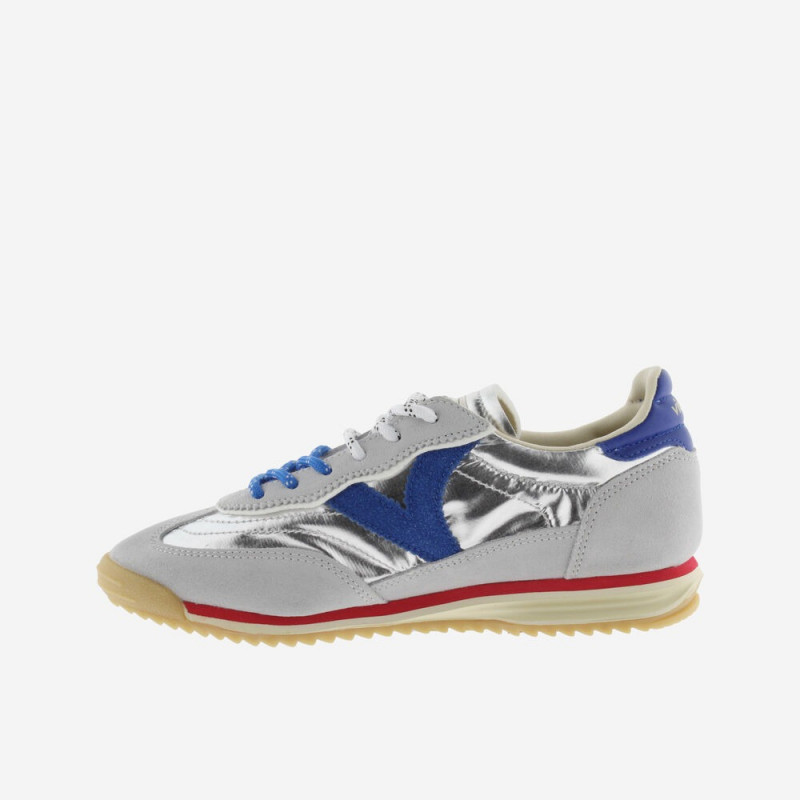 Sneakers pour femme fabriquées en nylon métallisé avec des empiècements superposés en daim !